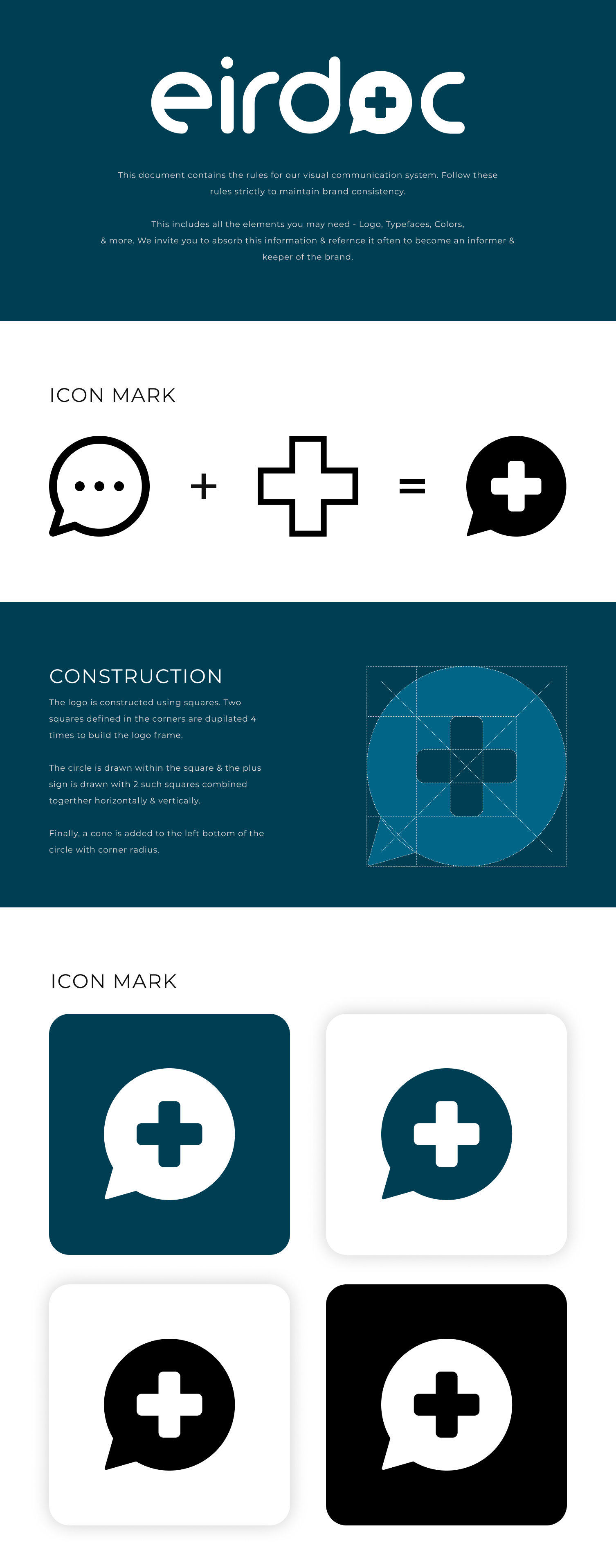 The final icon mark was a chat icon with a healthcare symbol added to it using the negative space.