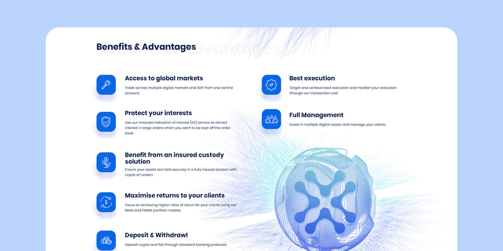 The platform offers trading as well as custody solution.