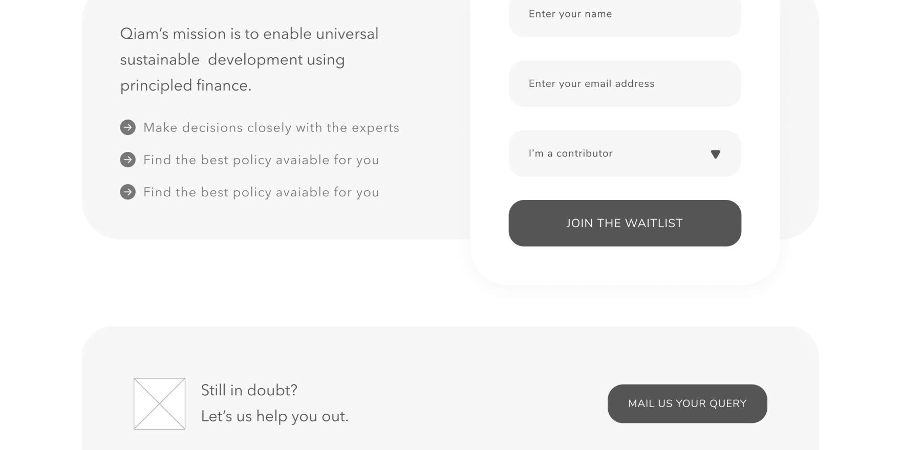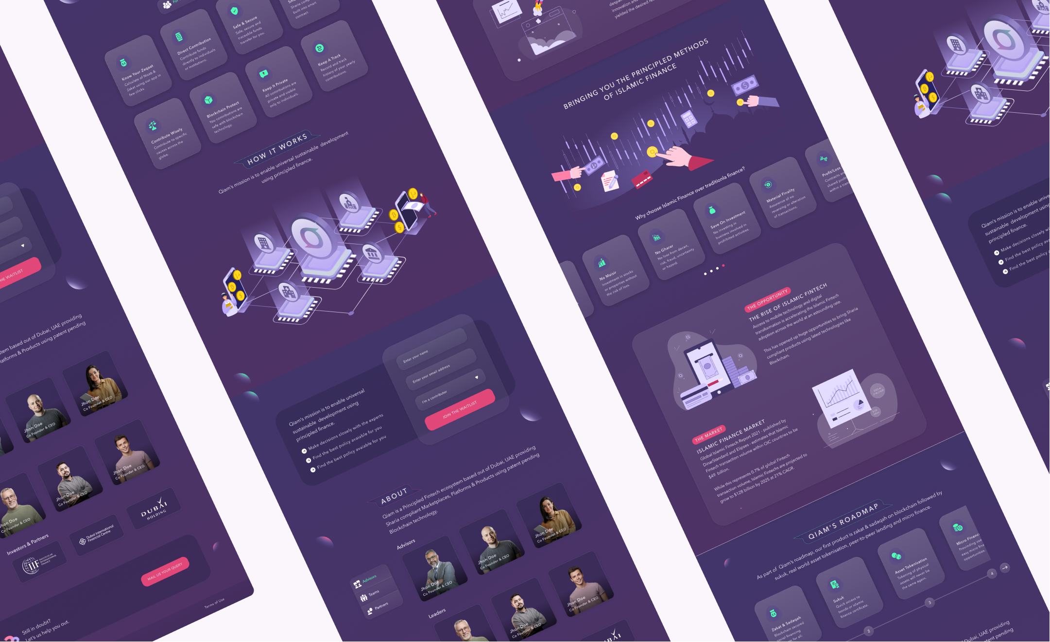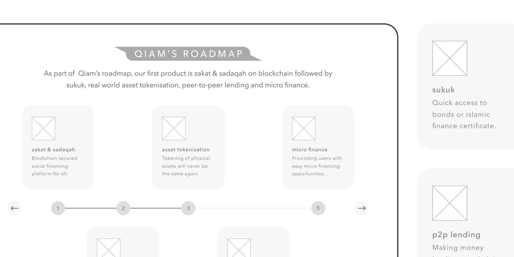 We also added some insights on Qiam’s roadmap to increase user participation. Finally, a sticky social media bar to build an early audience.