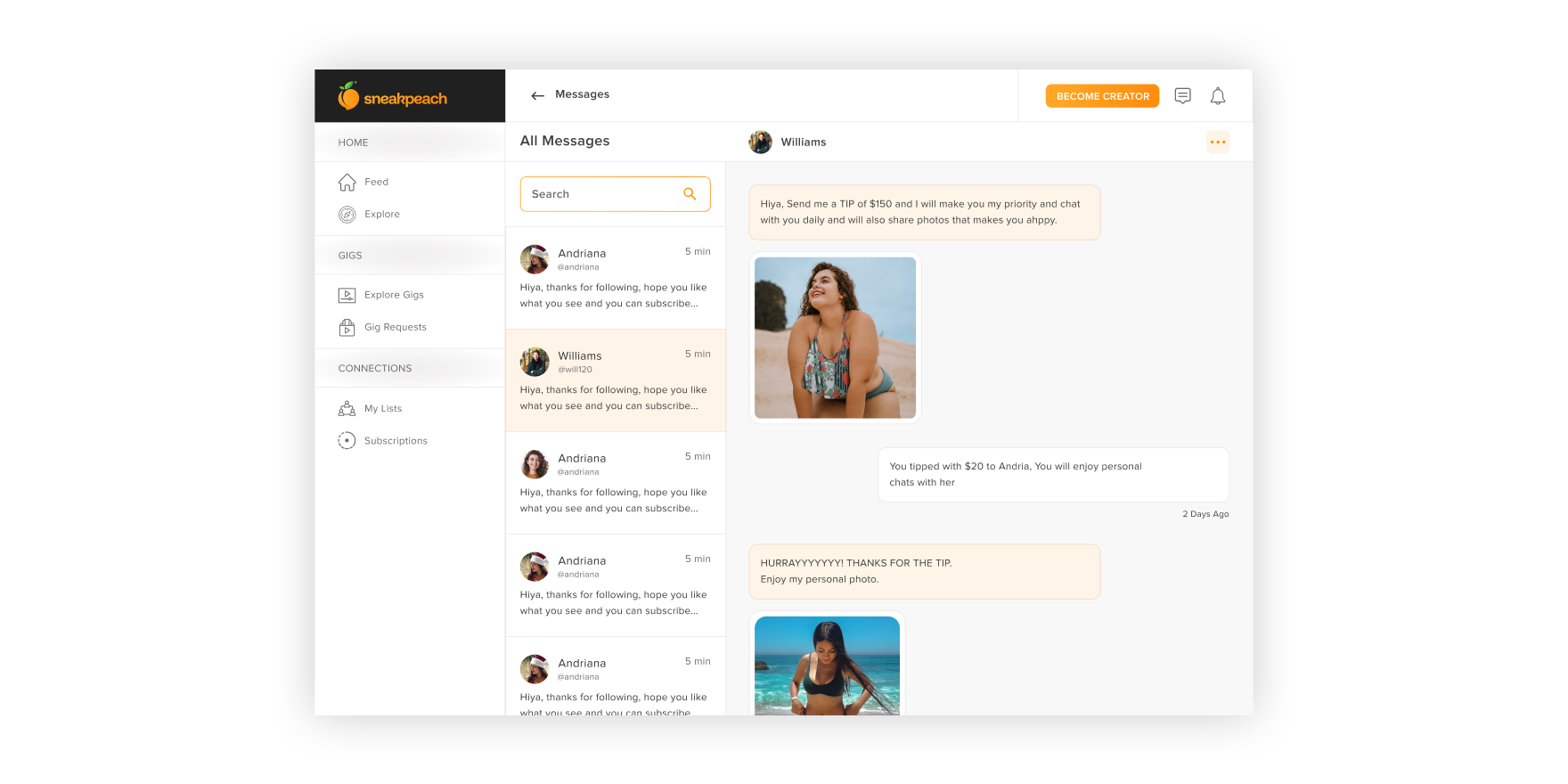SNEAKPEACH is an exhilarating digital platform in the Netherlands where you can get your favorite creators to cater to your interests.