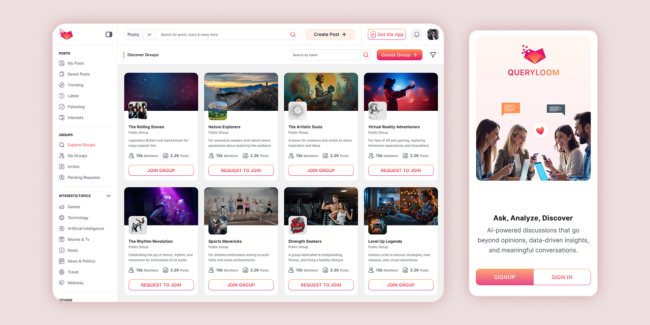 Queryloom approached us with a clear objective — to design the UI for both their web and mobile apps. The client had already finalized their feature set and user experience flows internally, but required professional UI design to bring their product to life with high visual standards and consistency.